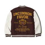 The 4:16 Uncommon Favor Leather Letterman Jacket is a premium, authentic letterman-style jacket built with the highest level of craftsmanship. Designed for teams, athletes, and anyone who appreciates true varsity construction, this jacket delivers unmatched durability, warmth, and a timeless silhouette.